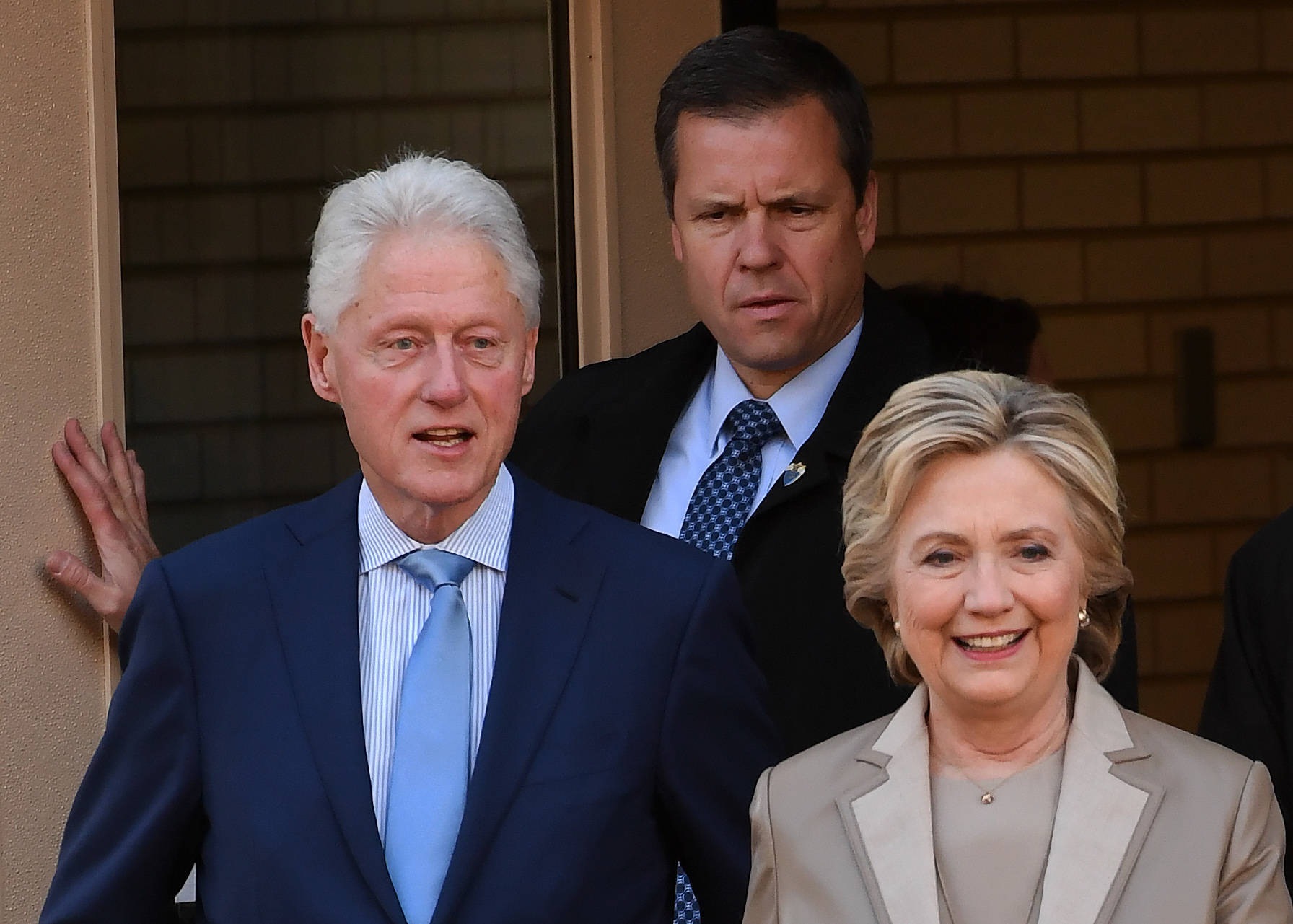 2016年11月8日,在美国纽约州查帕阔一处投票站,民主党总统候选人希拉里·克林顿(前右)与她的丈夫、前总统比尔·克林顿(前左)参加大选投票。新华社记者殷博古摄克林顿此前承认,本世纪初曾因克林顿基金会相关人道主义工作搭乘爱泼斯坦的飞机,但从未到访过爱泼斯坦的私人岛屿。希拉里则称与爱泼斯坦没有实质性互动,从未乘坐他的飞机或到访其岛屿。